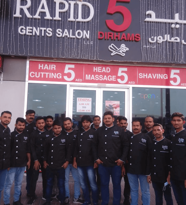 Rapid Gent’s Salon, your quick-service destination since 2017! We guarantee service within 15 minutes, starting at just 5 AED. Book now for an affordable, relaxing experience!